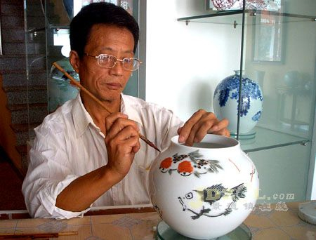 近来,关于景德镇传统技艺之一的古彩话题颇热烈:陶艺大家周国帧先生多番呼吁,古彩技艺濒临失传危险,必须高度重视大力抢救;古彩传人之一的蓝国华先生也持同论,并道出古彩陷于危境的诸多原因。为此,笔者特地又走访了现代古彩宗师(已故)段茂发的嫡传孙子、陶艺家段庆新先生。正在中国陶瓷城一家画室画古彩作品的段先生,十分感慨地向我介绍了当代古彩及有数的几个传人的现状。