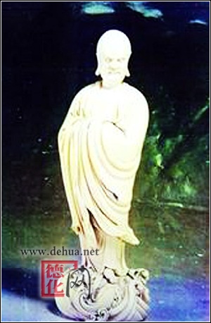福建德化窑雕塑,以其着意刻画塑像的内涵而著称。在德化的雕像中,被人熟知的是这尊带有何朝宗背款的渡海达摩立像(见图)。