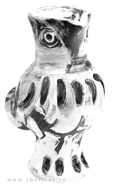 中期作品:5年之后,毕加索的陶艺作品开始从平面向三维立体作品过渡。艺术家开始在地中海一带传统的陶艺作坊中,尝试烧制陶罐之类的立体作品,然后在上面绘画。
