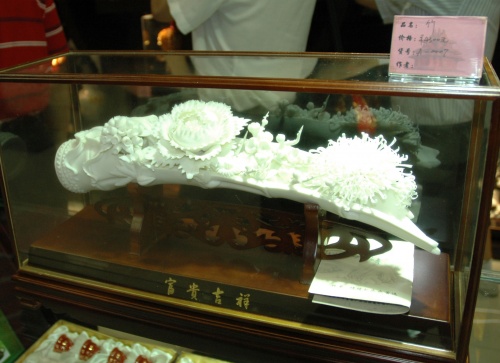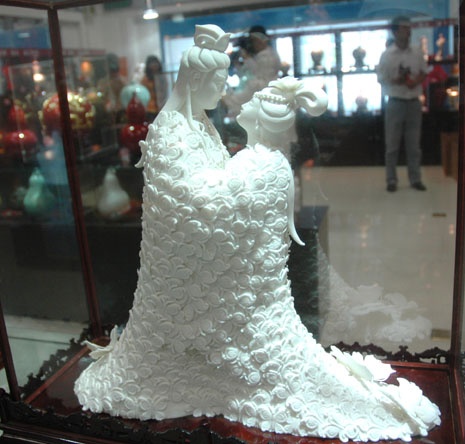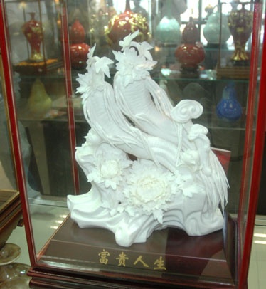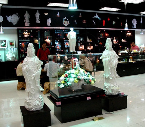 据黄经理介绍,德化陶瓷除了本身原材料珍贵稀缺外,精湛的瓷器雕刻艺术无疑也是一大点睛之笔,并且目前掌握此项技术的艺术家已不多,据悉具有“中国白”、“中国红”特色瓷器在制作过程中性能极不稳定,窑烧控制难度极大,要使产品出炉后色泽匀称、表面光滑细密、不留针孔,成为众多瓷雕艺术家攻关研究的课题,并且雕刻手法随瓷器的本身而定,可说是形成的瓷器雕刻成品每一件都是世界上独一无二的,均可被视为天下独特的艺术瑰宝!它们独具神韵,具有无穷的艺术魅力,有极高的艺术价值。近年来,随着人们对德化窑瓷认识的深入,独具特色的德化窑瓷逐渐成为收藏爱好者的新宠,世界各地的收藏爱好者纷纷将目光投注于此,并且“中国白”也多次作为国礼馈赠。