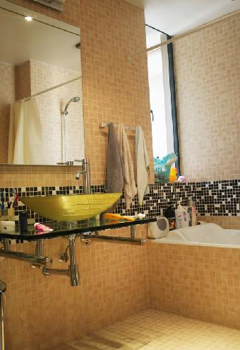 与喜欢细腻风格的人相对,喜欢色彩艳丽大图案的人也有了个性化的选择,用大面积花片代替腰线,除了花色的冲击力更为强烈以外,不同的拼装方式也能让人眼前一亮。可根据使用者的喜好,选择不同瓷砖,做出艺术的排列组合,创造出个性化的设计。