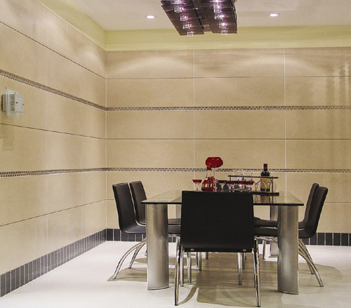 马可波罗设计师通过对家庭光照度的分析,又开发了波光香槟石,光泽度介于亚光砖与抛光砖之间,更加丰富了产品使用范围。