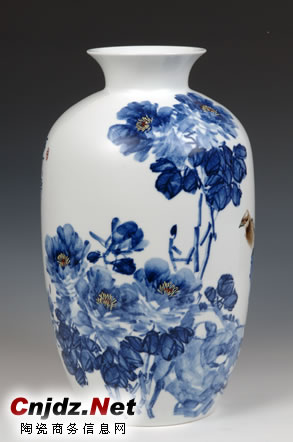 在陶艺创作中,胡强扎实深厚的文化功底为他提供了源源不断的养分,他的作品窑变彩绘,色釉变幻,肌理天然,配以精美的绘画装饰,意趣天成。他的作品笔力遒劲,收放自如,他的手指画“牡丹”、“紫藤”技法娴熟,堪称一绝。尤其是作品里点缀的“印章篆刻”,透出一股沁人心脾的书卷气。