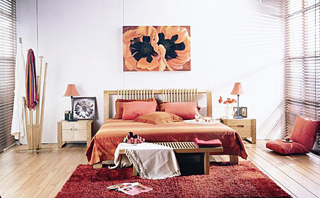 利用视觉感受来改变居室空间印象。有两种方法:一种是将空间扩大,例如将墙面或天花板涂饰成接近天空的浅蓝色,这样可以产生空间扩大的视觉效果。另一种作法是发挥色彩的功效去创造特定的室内气氛。墙面装饰可选用色彩强烈的民间工艺品,也可采用抽象的色块,只要使形和色协调,就能收到令人满意的效果。
