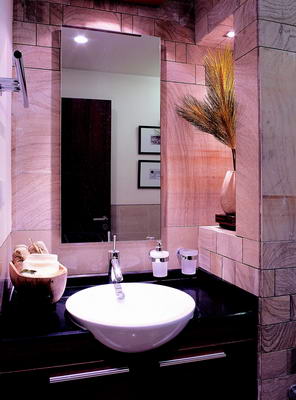东南亚风情,舒张中有含蓄,妩媚中带神秘,兼具平和与激情。把家打造成浓艳绮丽的东南亚风情,它所带来的不仅是视觉的锦绣多彩,更是生活的曼妙体验。选择石材来打造卫生间,呈现出的是完全的热带情怀,并与客厅中的立柱设计形成强烈的呼应效果。