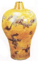 此瓶飾飛鳳和萬字流雲,雖設計精細,但紋飾效果並部理想。低溫黃釉不勻,褐釉多處脫彩。