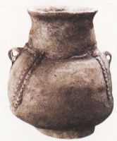 泥質灰陶。侈口,長颈,鼓腹,假圈足。肩部有封稱穿耳,腹部有四條附加堆纹象徵皮囊接缝痕。器型具有濃郁的地方特色,便於攜帶,反映出以農牧經濟為主的文化背景及特徵。