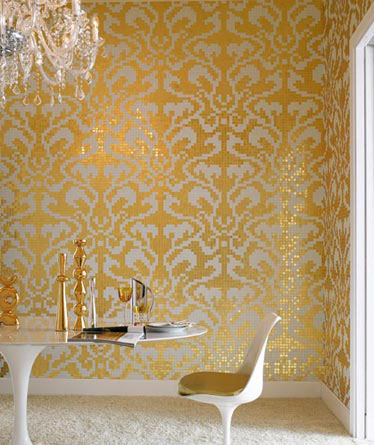 镀金马赛克全部采用18K黄金镀面,拥有夺人的闪耀光彩,试想一下,金光闪闪的墙面,除了给人视觉上的冲击外,更是品位与尊贵的象征。