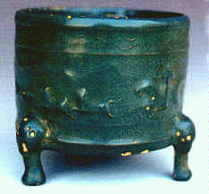 宋代 汝窑墨绿釉奔馬纹三足樽 高17公分