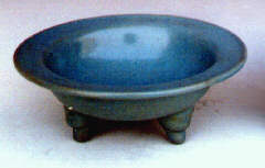 宋代 汝窑天蓝三足盘 径13公分 (蔡款)