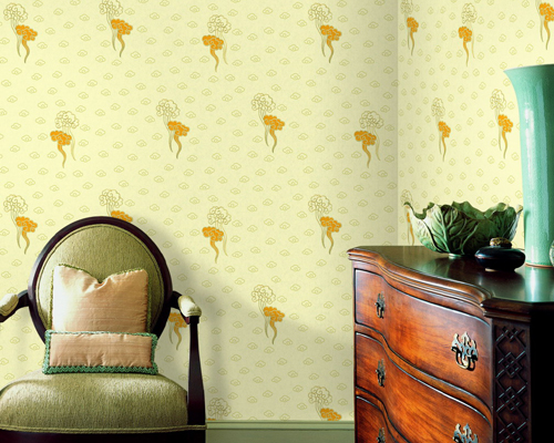 潮流总是起起落落,今年,略带现代元素的民族风情再度成为潮流的宠儿。“祥云”以质朴的泥土基调为主色调,配以极富中国民族风情的精致手工刺绣,让云朵、花草回归自然般的在墙面上轻舞,犹如置身于纳西族村寨中,聆听山歌回荡;浅金色的铃铛花刺绣,令人清心爽目,宁静、幽雅、淡泊的感觉油然而生;镶有珍珠的绣花图案,整齐散落在珠光银白基调的墙纸上,剔透晶莹,洋溢着东方式内敛而纯洁的浪漫情怀。