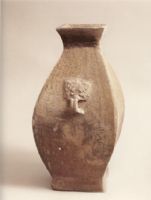 方口平唇,鼓腹,假圈足底。腹部有两个铺首耳。钫是西汉中期以前江浙一带的一种仿青铜器制品,在墓内往往与同是仿青铜器的鼎、敦、壶、瓿形成组合,至西汉后期基本消失。