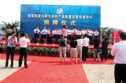 9月16日藉第八届中国(淄博)国际陶瓷博览会和世界陶瓷采购大会举办之际,国家陶瓷与耐火材料产品质量监督检验中心揭牌仪式在中国陶瓷科技城隆重举行,国家监委、监管部刘安平与淄博市市长周清利一起为“国家陶瓷与耐火材料产品质量监督中心”的成立揭牌。