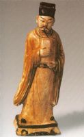 此俑头戴黑色幞头,身着红色大袖长袍,眉目清秀,须髯飘逸,双手捧书,一副文人气派。