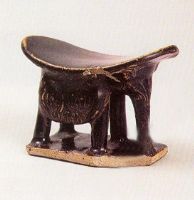 瓷枕出土于唐墓,为大象形,直立于平板座上,像鼻觸地,背驼枕面,枕面是长椭圆,两头翹起呈马鞍形。通體施黑釉,大象雕塑简单,形象笨拙,是塑雕艺术与实用品的巧妙结合,胎土白硬。從胎、釉、造型等特点看屬唐代耀州窑的产品。