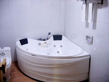 在浴缸周围的墙壁上打一个七八厘米深的凹洞,再铺上与墙壁相同的瓷砖,此洞可用来放洗浴用品等东西。这样扩大了使用空间,使用起来也方便、自如,看上去卫生间井然有序。