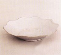 口沿为十瓣花口,坦腹,浅圈足,外底草刻一(官)字。通體轻薄坚密。同一墓中这种形制的器物为成套组合。共出有十件。在浙江钱氏家族墓中,出有一批品种各異带(官)与(新官)字款的精美白瓷。