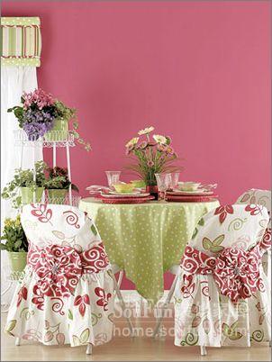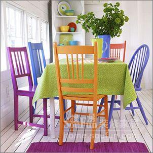 普普通通的折叠椅隐藏在颜色鲜艳,款式新颖的椅套里,与桌上铺的色彩夸张的桌布相映成趣,平凡立刻得到升华,感觉像置身在一场热闹的大Party中。