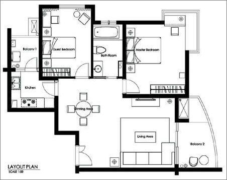 设计首先考虑的是空间的使用率。在88平方米内的空间里,功能区划分为两个卧室、一客厅、一餐厅、一卫生间和一个厨房,还有一个阳台,实际使用率达到95%,可以说对每一平方米都物尽其用。