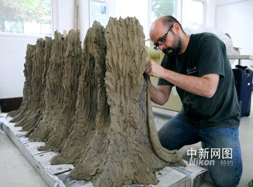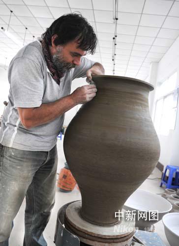 图为希腊陶艺家柯里斯道斯正在进行创作。作 者:闫盛霆