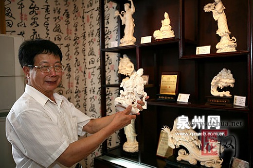 当时作为德化瓷厂的工人是值得显摆的事情,佩戴上瓷厂的胸章,工友们都觉得很自豪。然而经过深思熟虑,苏清河在亲戚、朋友的一片反对声中辞职离开了瓷厂。时年22岁的苏清河和另外一名师兄一起,走南闯北雕塑佛像。