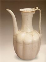 瓜稜執壶在宋瓷中较为流行。壶口微敞,长颈,丰肩,瓜稜腹,壶盖作内凹平沿盘状,顶钮呈含苞欲放的花蕊。