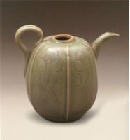 此把南宋早期龙泉窑瓜稜壶是少见器型之一,细长的流,保留着北宋盘口壶的长流特点,颈和上口已经全部缩成一圈。