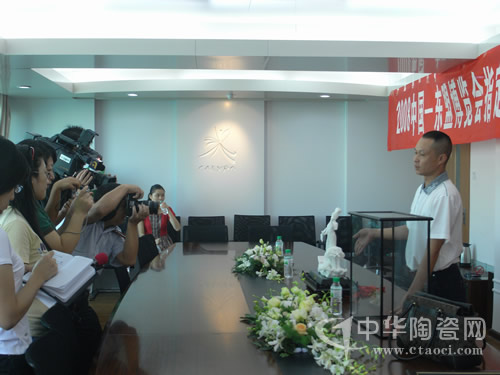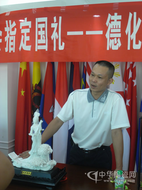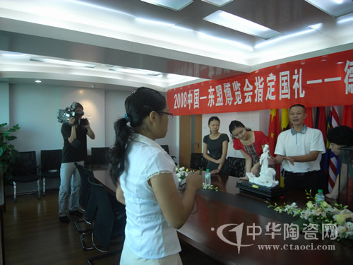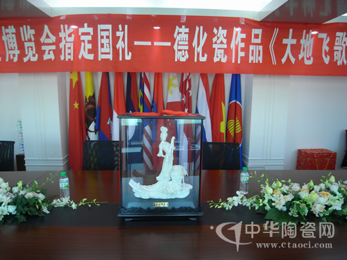中华陶瓷网讯,10月17日第六届中国-东盟博览会秘书处举行“2008中国—东盟博览会指定国礼——德化瓷作品《大地飞歌》交接仪式”,由德化云姿陶瓷有限公司总经理,工艺美术大师苏志强创作的《大地飞歌》被定为2008中国—东盟博览会指定国礼,赠送前来参加第五届中国--东盟博览会的东盟各国官员。