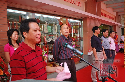 县委常委、宣传部长涂健圻为中国瓷都·德化——恒鑫源陶瓷福州营销中心授牌。副县长黄耀昆代表县委、县政府致辞,他说,此次中国瓷都·德化——恒鑫源陶瓷福州营销中心在省会福州的设立,旨在通过这里构架德化面向国内外的经济、商贸、文化交流合作桥梁,并借助这里良好的区位优势和人文优势进一步拓展国内外市场,让德化陶瓷通过福州为广大国内外人士认识、认知,消费购买。