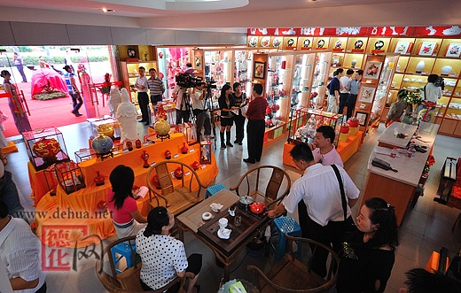 据了解,营销中心包括了当代德化瓷艺术的品种和流派,熔现代艺术和现代科技于一体,既有工艺瓷、高档艺术瓷雕,又有日用瓷,可谓异彩纷呈,百花争妍艺术,汇集了瓷都德化20多位工艺美术大师和企业的工艺、日用两大类陶瓷系列数千件作品、产品。
