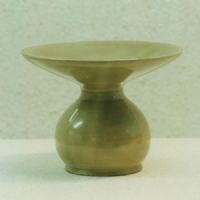 浅盘口,沿外侈,细短颈,圆鼓腹,浅圈足,内外满釉.