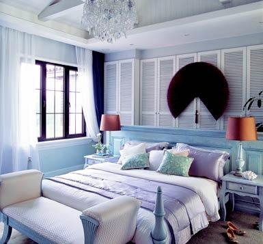 实用主义和浪漫主义可以在卧室中并存,蓝白色调浪漫而沉静,蓝色清透与白色的安静相互映衬,有着海一般的梦幻感觉,优雅的配色似如歌的行板,浪漫温馨,装点出如水一般纯净又内涵丰富的卧室氛围。