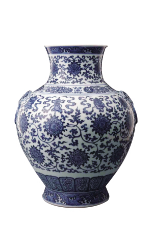 瓷器作为每一场瓷杂类拍卖的重中之重得到众多藏家的厚爱,此次秋拍特别为大家准备了众多极具收藏价值和欣赏价值的瓷器。“清乾隆青花缠枝莲托八宝纹铺首尊”和“清乾隆青花瑞果花卉纹蒜头瓶”是两件乾隆时期官窑的代表作品。铺首尊造型庄重,通体青花装饰,运用模仿明代永宣青花画法的点染画法,全器绘画流畅细腻,釉面匀莹润泽,为乾隆时期官窑之佳器,此类藏品成为各大博物馆及收藏家必收藏的种类,近年来每逢在各大拍卖会上出现时,无论是品相全美亦或略带瑕疵的拍品都创造了不俗的成绩。此件铺首尊青花发色浓艳,绘工流畅,品相全美,是一件极富收藏潜力的官窑佳作。青花瑞果花卉纹蒜头瓶也是一件体现乾隆时期青花正蓝明快色调的代表作品,可称是一件乾隆时期的官窑标准器。
