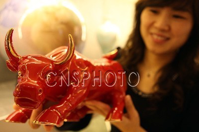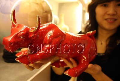 明年是中国农历的“牛”年,许多生肖牛受到消费者的追捧。而曾被陶瓷界称为“世界陶瓷史的哥德巴赫猜想”纯正红釉瓷的创作者、青年工艺美术师徐少东借鉴“华尔街牛市”设计的生肖牛,更成为新宠。它预示人们的事业、生活以至世界经济重现繁荣和鼎盛。