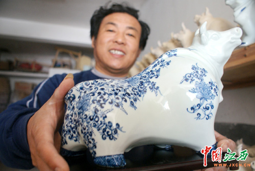 2009年是中国传统的牛年,牛在中国的传统文化中象征着开拓进取、甘于奉献。为迎接农历牛年的到来,江西省景德镇的陶瓷艺术家们设计出各种寓意深刻、造型可爱的牛年生肖瓷,深受市民青睐。