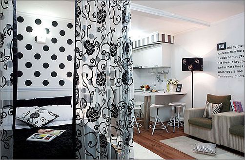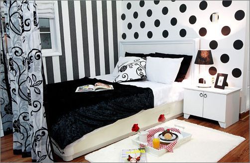 卧室空间 黑白床幔和床品,配上圆点墙面,一切都显得那么和谐。