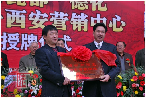 德化瓷向以白瓷著名,被誉为“东方艺术”、因而“天下共宝之”。 德化瓷塑以中国白为材质,瓷塑造型、技艺、材质、釉色、烧制技艺自成特色。为进一步解读、诠释当代德化瓷艺术经典,促进德化瓷艺术的传承、创新和发展。经精心筹备,中国瓷都·德化——迪云州陶瓷西安营销中心,于11月15日在西安正式授牌,开业迎宾。这是瓷都德化精品陶瓷的集中全面展示,也是德化与西安两地携手合作、共促发展的一个良好的窗口。