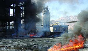 火势刚得以控制,距厂房500米处又升起了浓烟。走近一看,原来有几名工人正在焚烧院内枯草。“原本打算将枯草就地点燃,现在厂房着火了,我们就割下来放到垃圾箱里烧。”一位工人说。看到此情此景,拉萨市公安消防支队有关负责人说,地上有煤焦油和液化气的混合物,一不小心火苗就能引燃它们,这样烧枯草,安全隐患很大,工人的消防意识很淡薄。