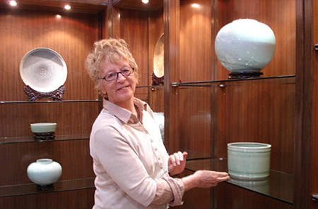 世界有名的陶艺家珍妮特·曼斯菲尔德女士在龙泉青瓷博物馆参观。