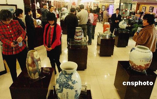 图为中华历史名窑大师精品展吸引众多专家学者参观。