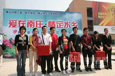 2008年11月16日,佛山市第二届"爱在南庄·情定水乡"集体婚礼--水乡田园风光·生态总部基地在中国陶瓷产业总部基地现场圆满举行。数十对新人,南庄镇党委委员王斌,南庄镇宣传办主任徐锦棠,南庄镇文化站站长甘小平等领导,陶瓷艺术家工艺美术师、佛山市工艺美术家创作院副院长黄强华,中国陶瓷产业总部基地相关负责人,以及众多媒体参加了此次活动。此外,活动还吸引了慕名前来的80多位摄影爱好者的热情参与。