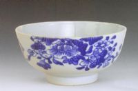 碗撇口,深腹,圈足,碗内光素,碗外壁青花绘折枝花卉,造型规整,是外销瓷中的上品。