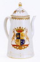 壶呈锥形,绘有瑞典贵族麦肯尼家族的纹章,绘以折枝花卉箭头形边饰。此器订制于1756年或略晚一些。