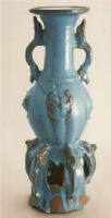 图片名称: 钧窑天蓝釉贴花兽面纹螭耳连座瓶