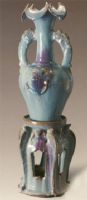 图片名称: 钧窑天蓝釉贴花兽面纹双耳连座瓶