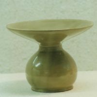 浅盘口,沿外侈,细短颈,圆鼓腹,浅圈足,内外满釉。