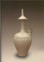胎白质细,釉白泛灰,足底无釉。采用剔刻技法。长颈中部饰一相轮状圆盘。颈肩交接处饰莲纹一周,肩的一侧塑葫芦形平盖流。