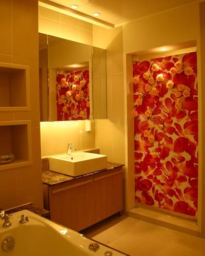 现在,你如果有一份罗曼蒂克的心境,不妨尝试一下阳光下的卫浴间。给卫浴间的窗子配上两道帘子,一层是朦胧的白纱,一层是彩色布艺。在阳光明媚的下午,躺在舒适的按摩浴缸中,让阳光透过白纱洒在身上,享受一种别样的温暖。你也可以用百叶窗替代布窗帘,随着户外光线的变幻改变百叶的角度。