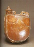 扁身双孔,塔式盖,凹底。因壶的上部有鸡冠状的孔鼻故名,亦称马镫壶。器身饰有仿皮囊缝合针脚纹,在断代上一般多以壶身保留皮囊祖型程度多少来推定时间早晚。