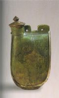扁体高身,管状口,口沿外侈,马鞍形双孔系,塔式盖上饰宝珠钮,底足呈椭圆形,微内凹。